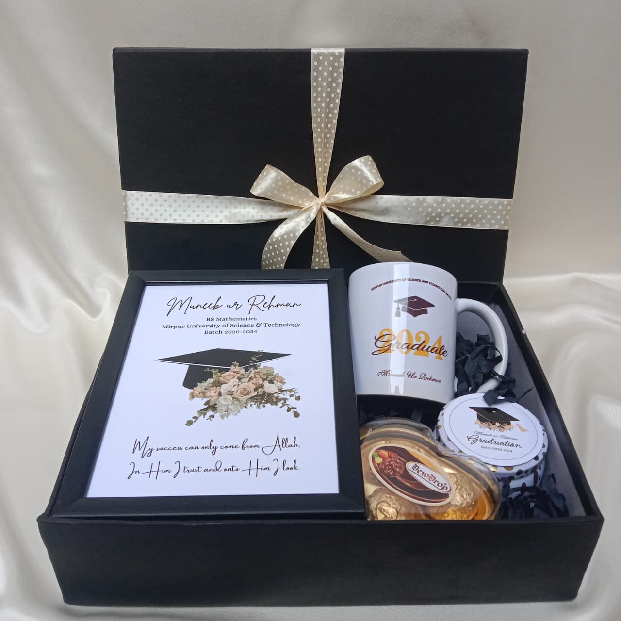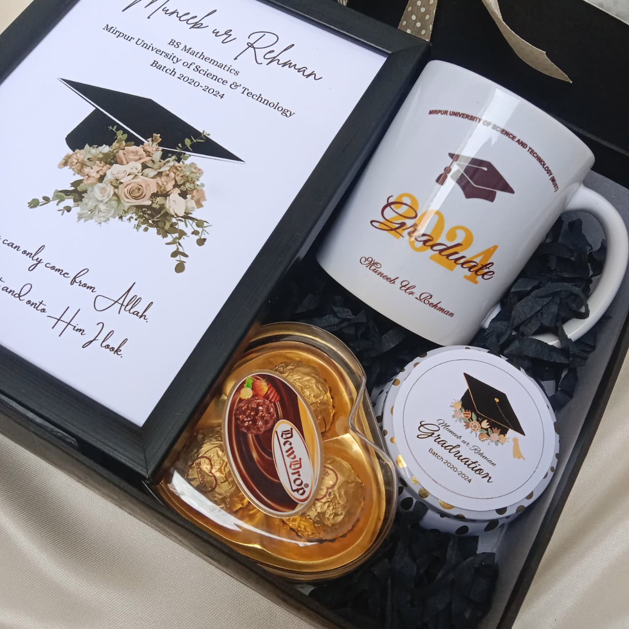 Celebrate their big achievement with our elegant Graduation Gift Box — a perfect mix of style and sentiment. Thoughtfully packed with personalized keepsakes and treats, it’s a meaningful way to say congratulations and make their special day even brighter.